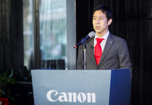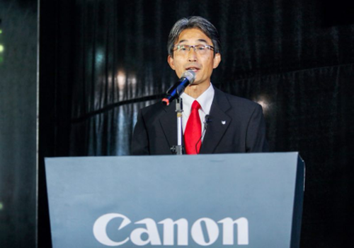 佳能(中国)有限公司影像打印扫描产品战略企划部副总经理松尾成晃发表演讲