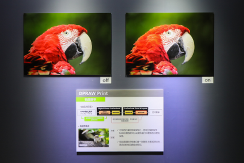 活动现场对比展示了开启DPRAW功能处理前后输出的照片