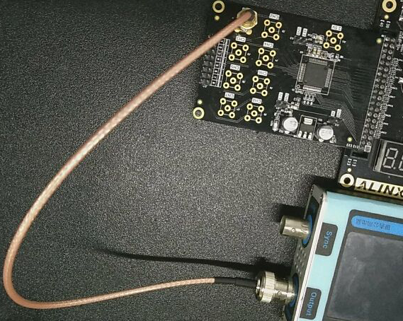 3)连接AN706的CH1输入到信号发生器的输出,AN706模块本身没有焊接SMA插头,本实验为了方便,自行焊接了一个SMA插头。