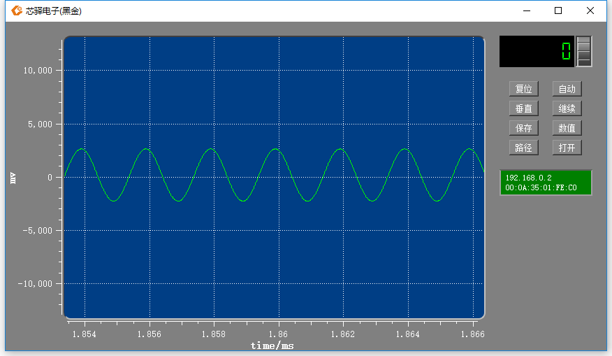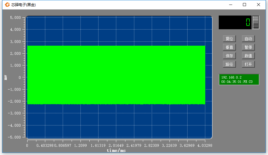暂停:“暂停“与”继续“切换,点击暂停波形,可再点击“继续”显示波形。