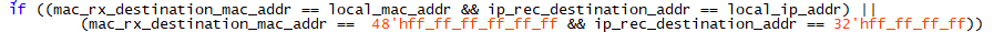 首先在空闲状态,上位机会通过以太网广播发送询问命令,因此在IP层接收时要加上判断是否是广播UDP数据,如果是,也接收数据,此段代码在ip_rx.v中,如下所示: