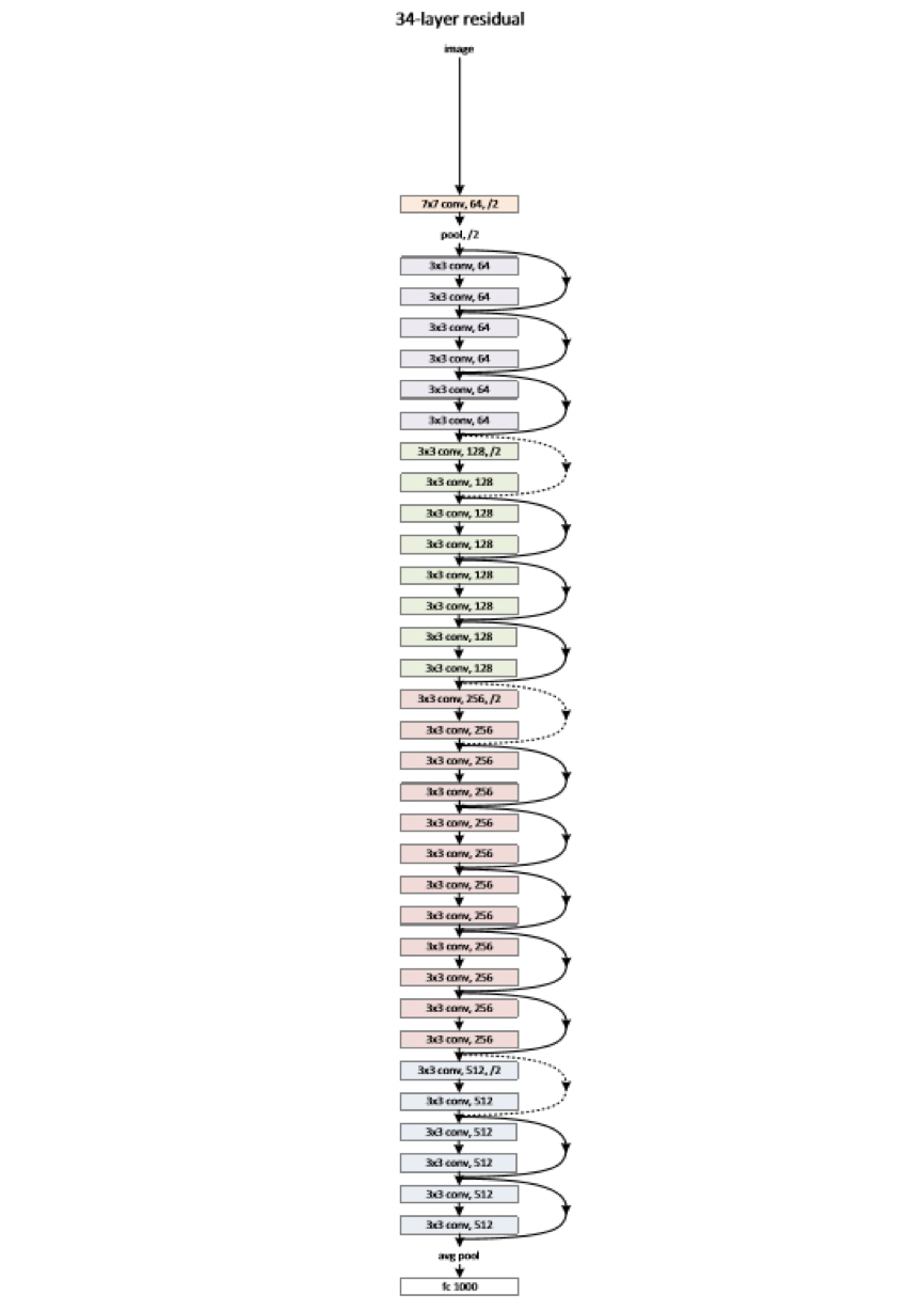 图2缩减版的深度残差学习网络,仅有34层,终极版有152层,自行感受一下