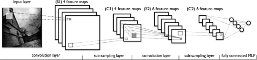 图4一个典型的卷积神经网络结构,注意到最后一层实际上是一个全连接层(摘自Theano教程)