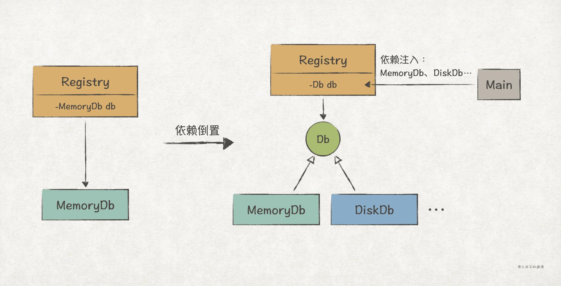 更好的设计应该是把Registry和MemoryDb的依赖关系倒置过来,首先我们需要从细节MemoryDb抽象出一个稳定的接口Db: