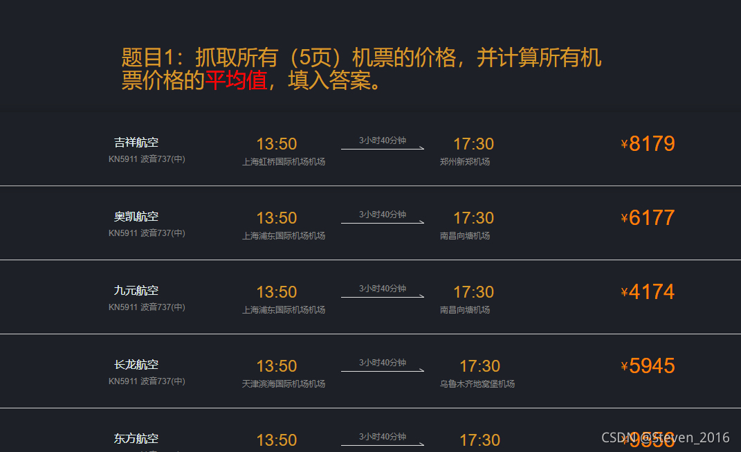 题目1:抓取所有(5页)机票的价格,并计算所有机票价格的平均值,填入答案