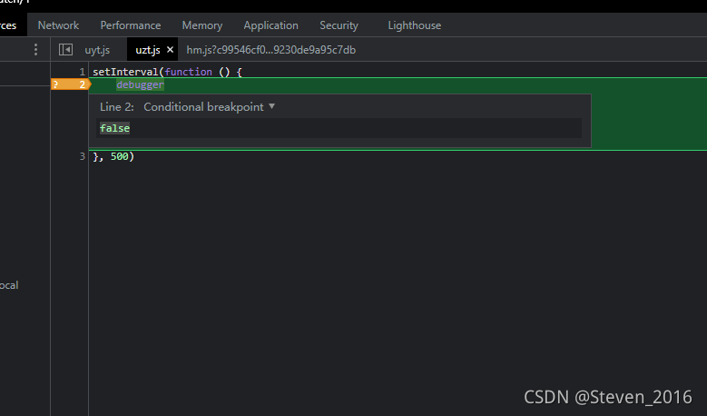 1、按下F12打开开发者工具后,刷新页面发现 有一个定时器 每500毫秒就开始debugger;