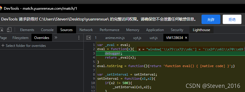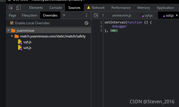 在Overrides 里面把 uzt.js 和 uyt.js 都保存到这里,并且 把 当下保存的文件里面的JS代码给删除掉!