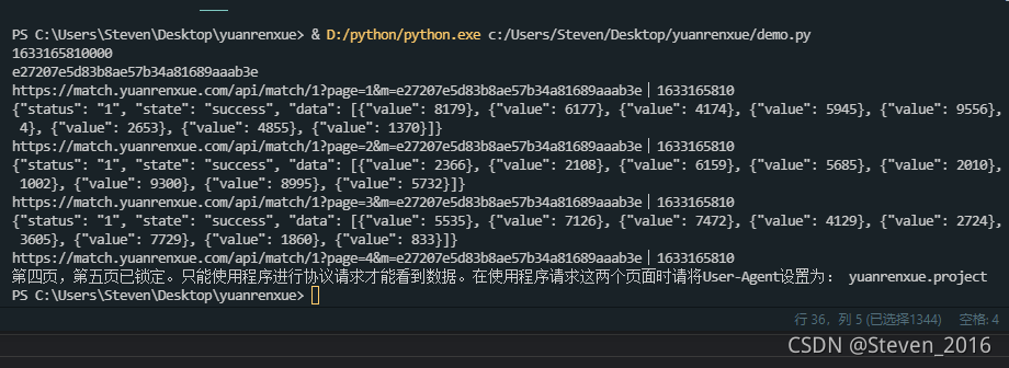 第四页,第五页已锁定。只能使用程序进行协议请求才能看到数据。在使用程序请求这两个页面时请将User-Agent设置为: yuanrenxue.project