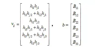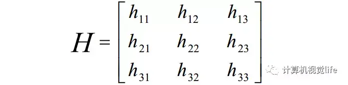 的形式,定义3X3的单应矩阵H=[h1 h2 h3]的第i列列向量: