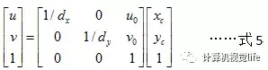 公式2中(xp, yp)与公式5中(xc, yc)相同,都是图像坐标系下的坐标。