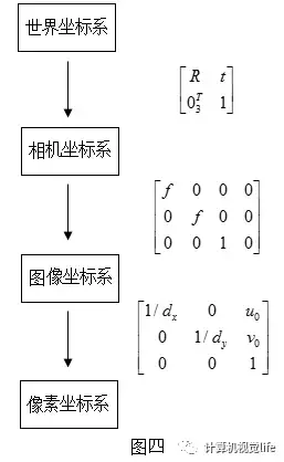最后用一幅图来总结从世界坐标系到像素坐标系(不考虑畸变)的转换关系: