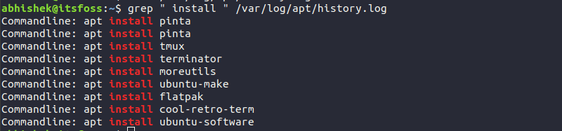 grep " install " /var/log/apt/history.log