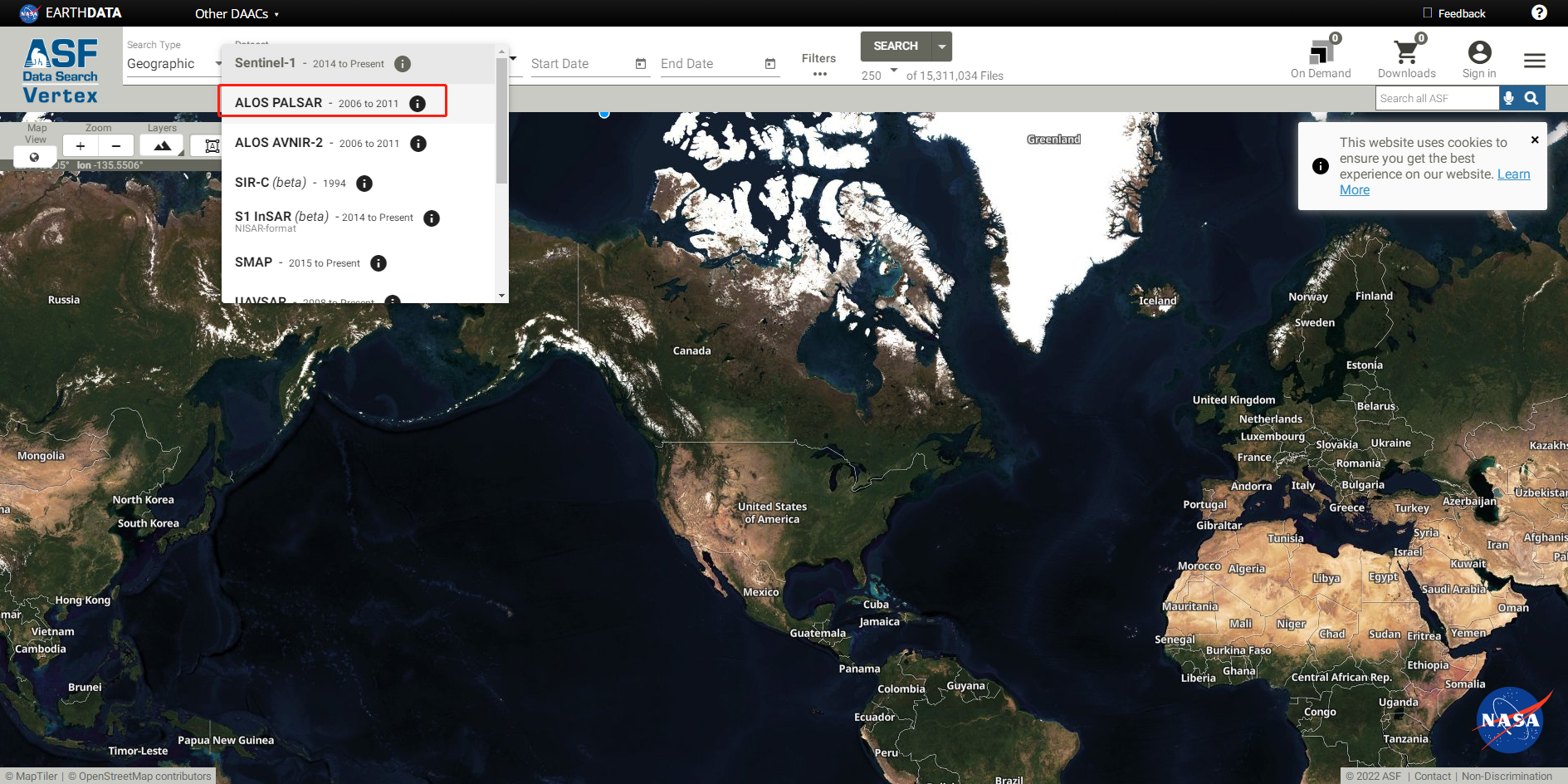 在Dataset中选择ALOS PALSAR