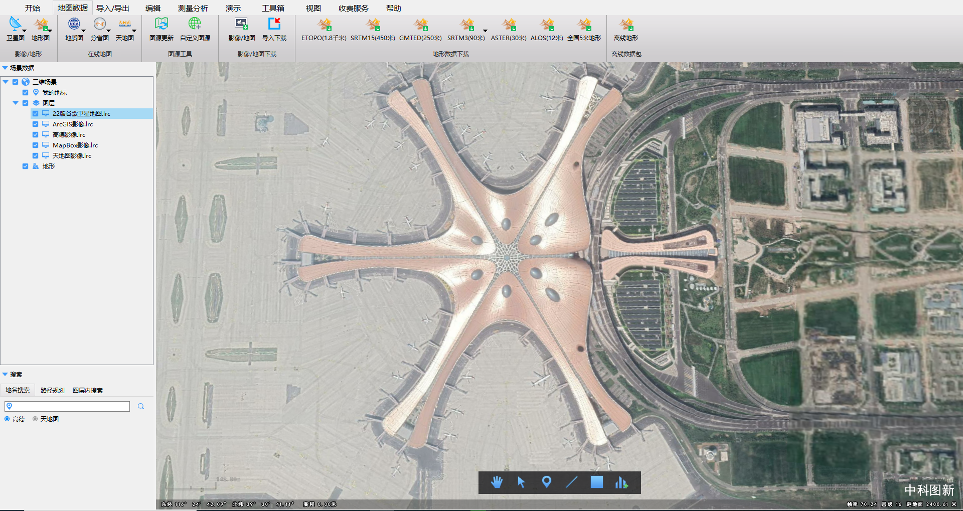 说到下载地形,那么高清卫星影像数据应该也是对你有用的,自从20年底谷歌地图成了各家必争的资源,那么有没有免费的高清卫星影像呢?当然有,看下图