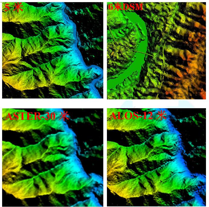 相对于30m 90m 的DEM,这个12.5m的DEM还是比较精细的,再来直观的对比下30m和90m的DEM