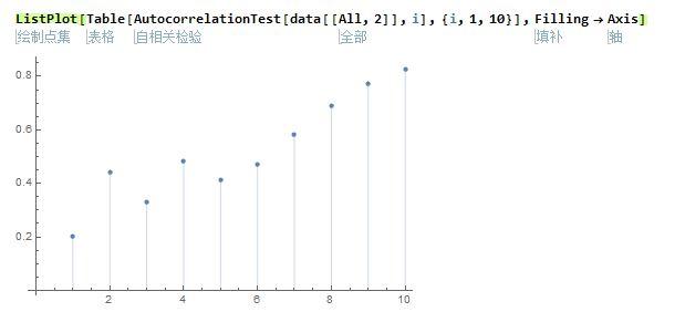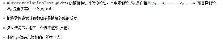 下面对于AutocorrelationTest[]这个函数的使用进行说明,如下图: