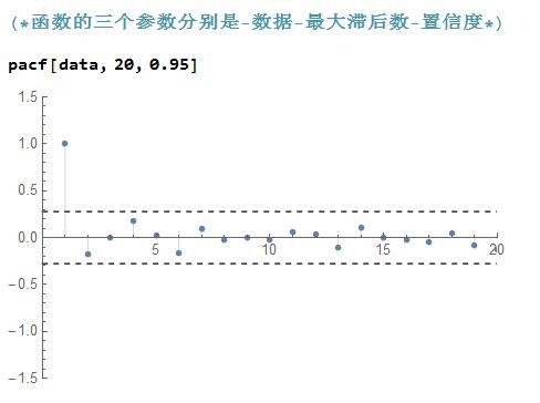 可以看到除了第一个点,那个不算,因为他是滞后为0,所以相关系数为1。后面的点都在95%的置信区间里面。这样只要后面的点不会在超出这个置信区间,就可以认为其是衰减到0的。