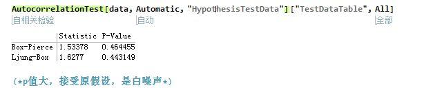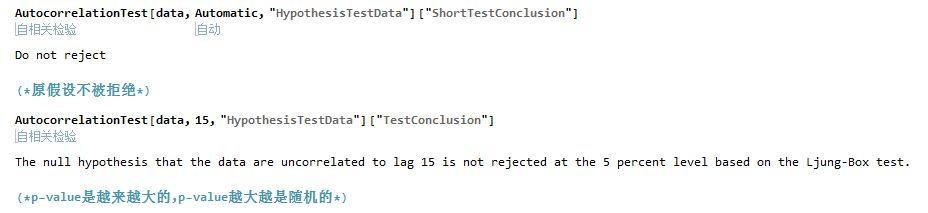 在mathematica中,判断白噪声使用AutocorrelationTest[],这个函数