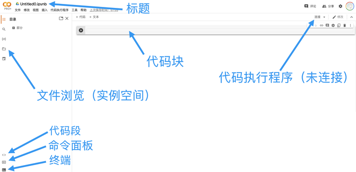 在第一次使用Colab时,最大的困难无疑是对整个平台的陌生而导致无从下手,因此我首先介绍与Colab相关的基础概念,以帮助大家更快地熟悉Colab平台。