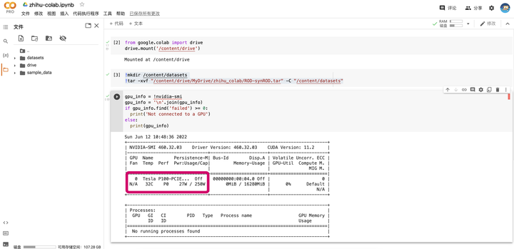 # 加载云端硬盘 from google.colab import drive drive.mount('/content/drive') # 查看分配到的GPU gpu_info = !nvidia-smi gpu_info = '\n'.join(gpu_info) if gpu_info.find('failed') >= 0: print('Not connected to a GPU') else: print(gpu_info) # 安装python包 !pip3 install <package>