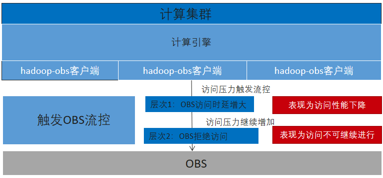 1.访问OBS服务时可能会因为网络短暂抖动,服务突发故障,服务突发流控等瞬时故障导致访问失败,hadoop-obs为了应对上述瞬时故障进行了必要的重试机制;