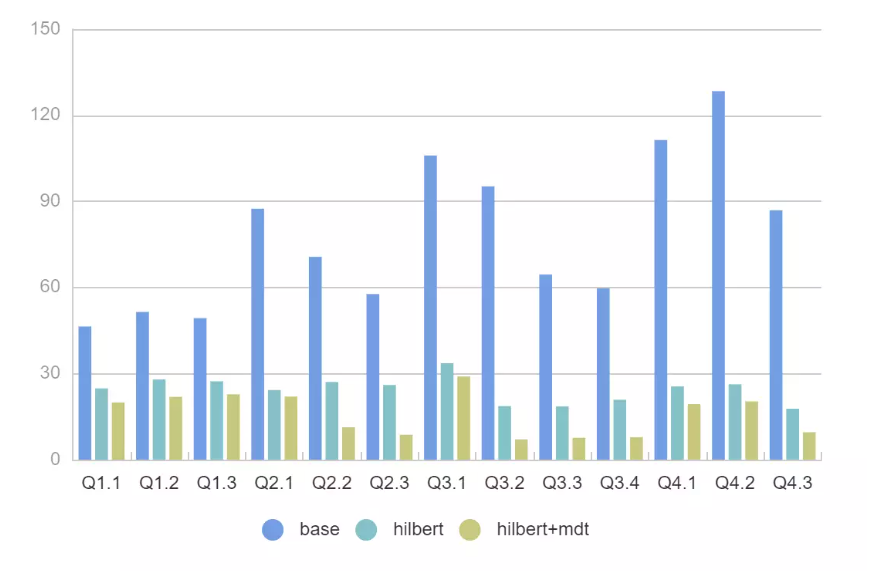 - SSB模型扫描的列数据都比较少, 实际场景中如果扫描多个列 Presto + MDT+ Hilbert 的性能可以达到 30x 以上。