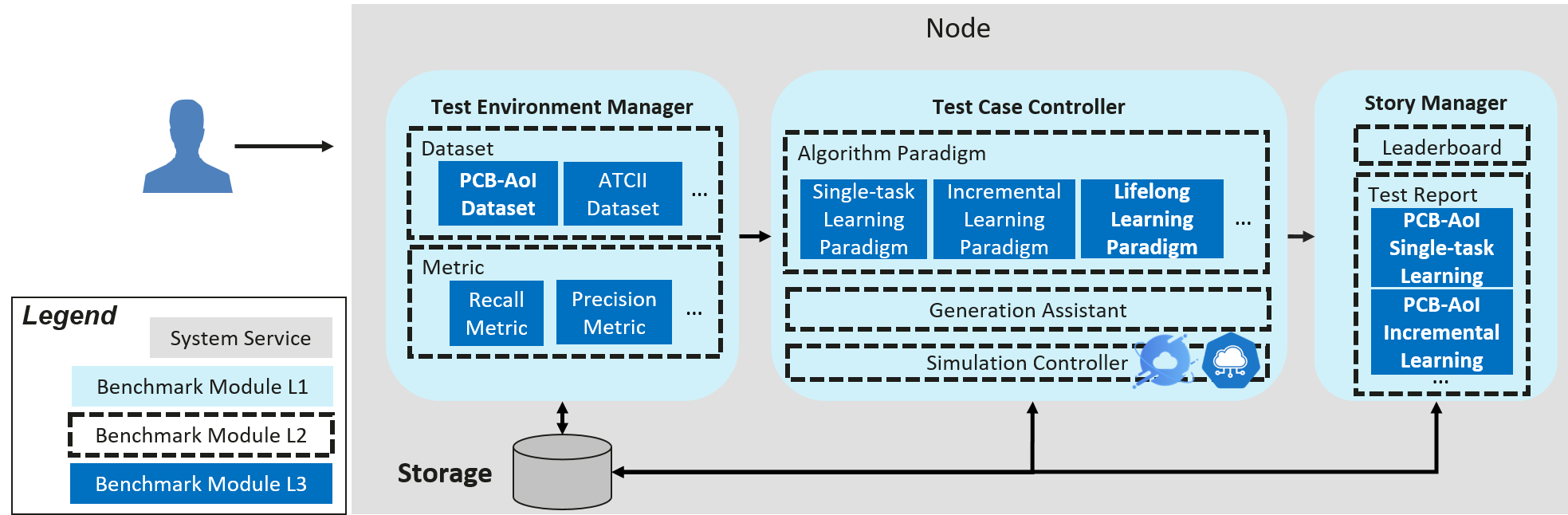 Ianvs只需一台机器即可运行,架构图如上图所示,关键组件包括: