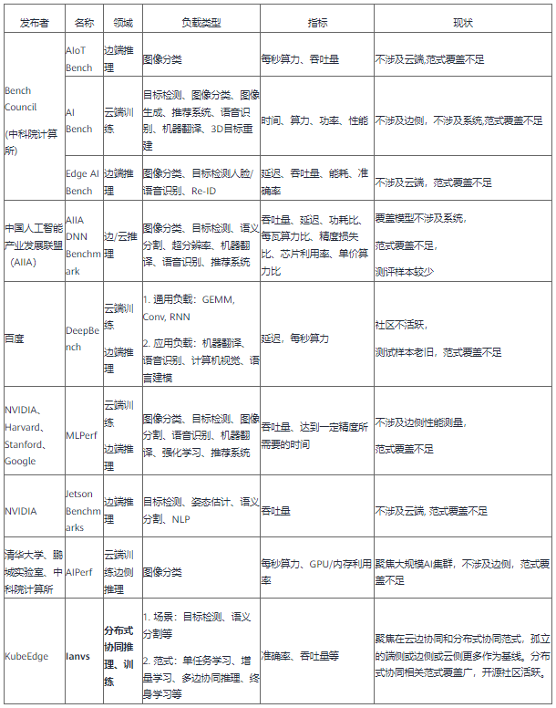 本章节首先总结当前学界与业界的分布式协同AI Benchmark,接下来对各个Benchmark展开简单描述。