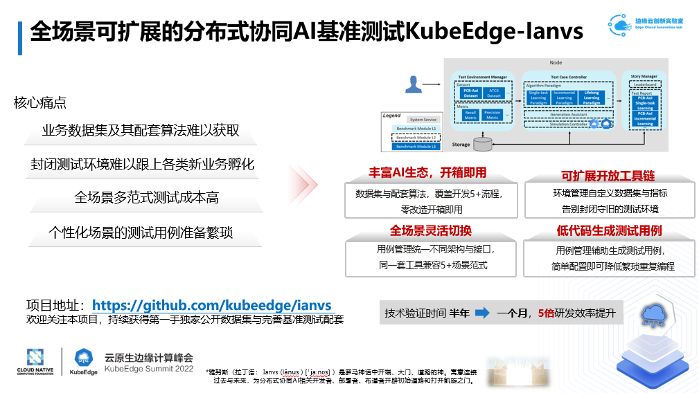 Ianvs是KubeEdge SIG AI孵化的开源分布式协同AI基准测试套件,帮助算法开发者快速测试分布式协同AI算法性能,促进更高效更有效的开发。借助单机就可以完成分布式协同AI前期研发工作。项目地址:https://github.com/kubeedge/ianvs