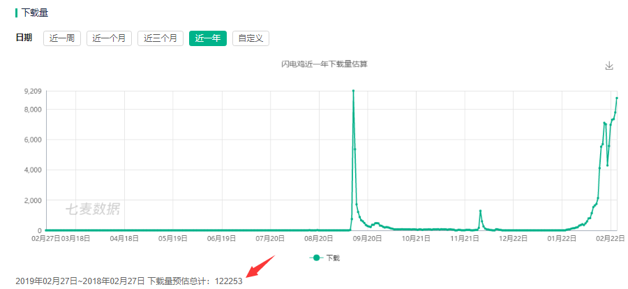 数据截止:2018/2/27 来源:七麦数据(qimai.cn)搜索“闪电鸡”