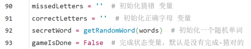 以猜单词的游戏为例,为了存储游戏中几个需要记录的结果,先要进行“变量初始化”。