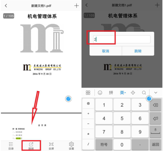 然后通过快速翻页或点击屏幕下方的“跳转”并输入对应的页码停留在需要添加书签的页面;
