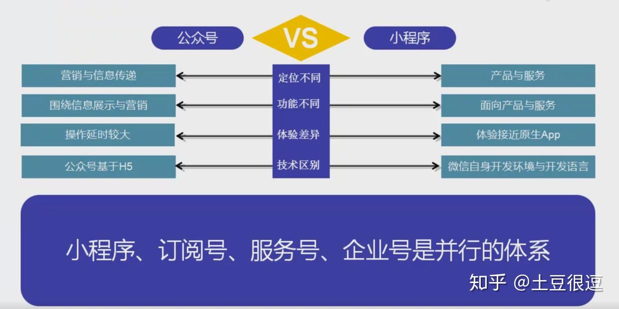 第二点功能不同,其实第一点已经说了,第三点操作上,公众号在消息上有延误性,而小程序的体验接近原生app。