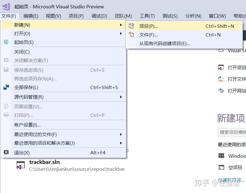 首先在visual studio里面新建一个控制台应用程序,两种方法,可以打开vs2017在起始页里面单击创建新项目然后选择windows控制台应用程序,第二种是点击文件->新建->项目然后选择windows控制台应用程序。