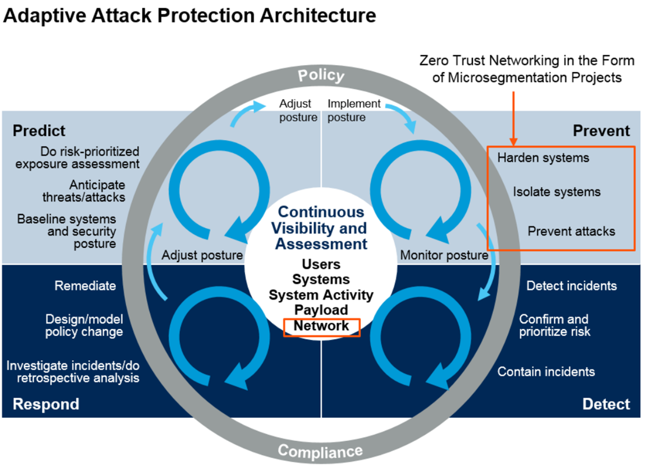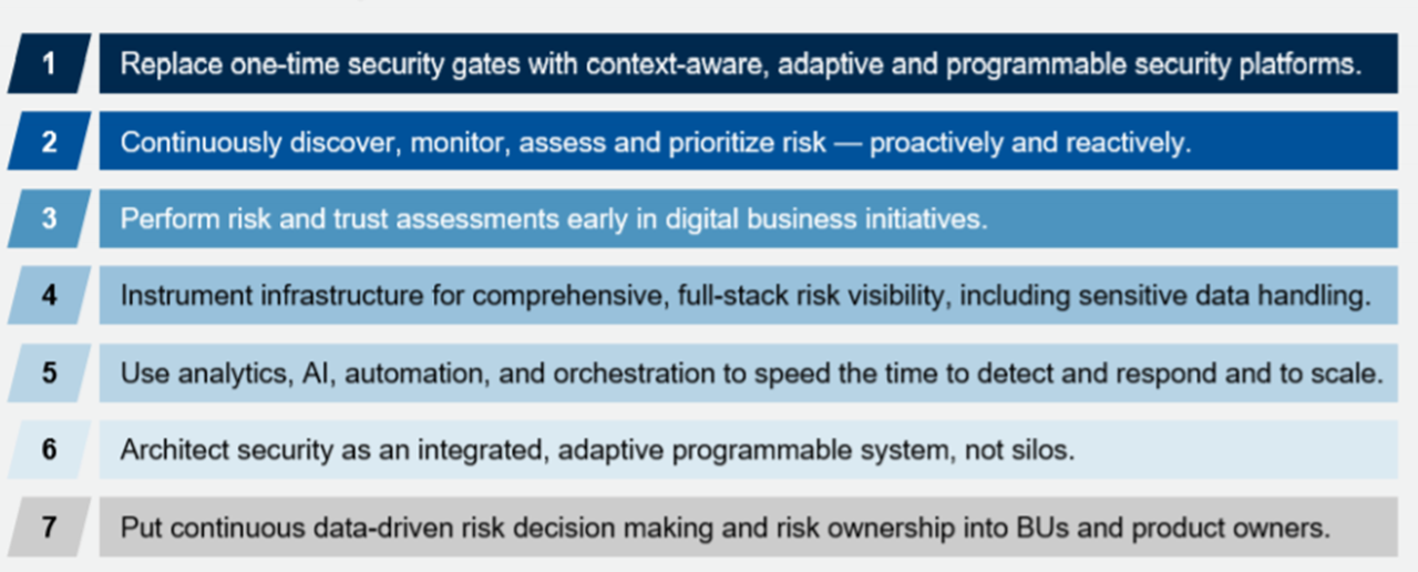 此外,CARTA在战略方法中强调,在交互期间持续监视和评估实体及其行为。在自适应安全架构中,CARTA战略总共包括七个步骤,零信任可以作为其第一步,如下图所示。